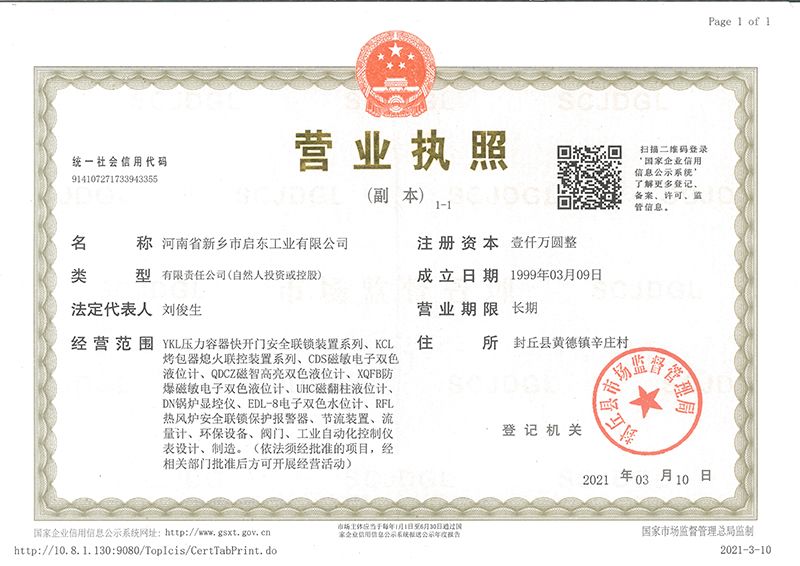 河南省新鄉市啟東工業有限公司始建于1987年,是專注研發、生產自動化儀器儀表(主要與壓力容器、鍋爐等容器配套使用)的廠家。主要產品有液位計(磁敏雙色型、磁翻柱型等)系列、烤包器熄火聯控裝置系列、壓力容器快開門安全聯鎖保護裝置系列、鍋爐報警器系列。二十多年來,公司產品暢銷國內并遠銷俄羅斯、蒙古與東南亞,深得廣大用戶的信賴和好評。我們多年來致力于自動化儀器儀表的研制生產,公司現具有完善的生產、試驗、檢測手段和設備。科技創新、誠信服務,是我們不變的經營理念,我們將以強有力的技術支持及售后竭誠為客戶提供良好的服務。  2012年我公司成功研發了KCL系列烤包器熄火聯控裝置,并于2013年2月2日榮獲中華人民共和國國家知識產權局辦法的《實用新型**證書》<**號:2021202257735>該產品廣泛應用于唐鋼等大型鋼鐵企業,為烤包器安全作業提供了有力的保障?! ?002年我公司成功研發磁敏電子雙色液位計獨特的高亮度LED紅綠雙色顯示,獲得了專家的首肯和用戶的一致好評。在此基礎上我公司研發人員十年磨一劍,致力于XQFB-1防爆型磁敏雙色液位計的研發,于2013年12月27日由國家防爆電器產品質量監督檢驗中心檢驗合格并頒發防爆合格證書<編號:cnex19.0883>。該產品性能得到了充分的發揮,廣泛應用于含有Ⅱ類A·B級T1-T4組可燃氣體或蒸汽與空氣混合形成的爆炸性混合物的0區、1區危險場所。連接用戶DCS或PLC系統實現遠距離集中顯示和控制,從而實現節能、數字化管理。為用戶增加了一定的經濟效益和社會效益,。2014年公司成功申請了夢潤儀表的logo,新的品牌新的形象,夢潤儀表是啟東的LOGO, 歡迎新老用戶前來洽談合作?! ∥覀円蝗缂韧刈⒅乜蒲械耐度?,憑借產品的不斷更新、加大科技含量,進一步拓展市場。我們相信品質成就未來,以過硬質量、優惠價格、完善的售后服務熱忱歡迎廣大客戶來我司視察指導、洽談業務;精誠合作,共創輝煌!